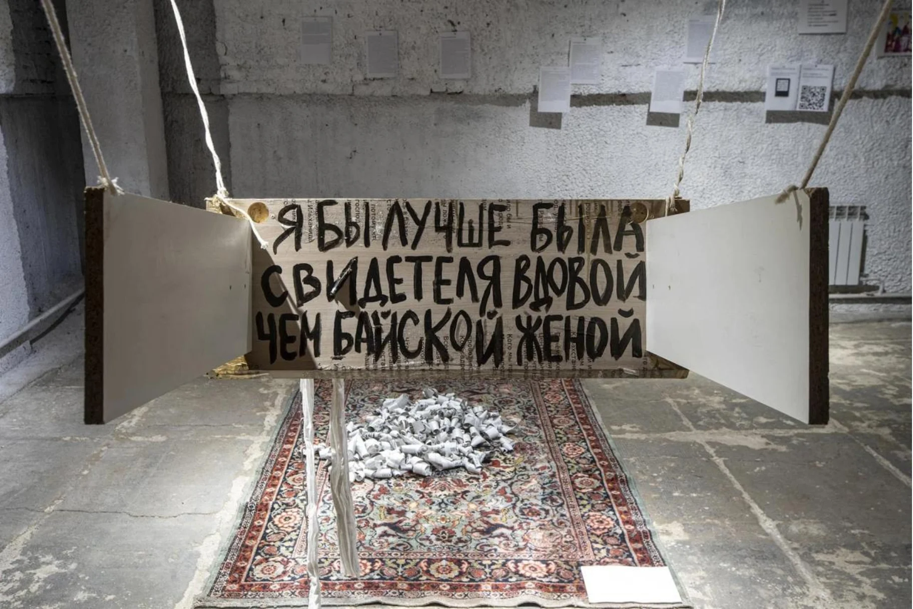 นิทรรศการ “Behind the Curtain” โดยกลุ่มศิลปินหญิงอุยกูร์รุ่นใหม่จากคาซัคสถานนามว่า Sultan Kizlar กลายเป็นหนึ่งในเสียงหายากที่กล้าพูดถึงการปราบปรามชาวอุยกูร์ในจีน ทว่านิทรรศการนี้กลับไม่เคยเปิดอย่างเป็นทางการในอัลมาตีเมื่อเดือนมกราคม 2025 เหตุผลไม่เปิดเผย แต่เชื่อว่าเกี่ยวกับจุดยืนทางการเมืองที่แหลมคมของศิลปิน
